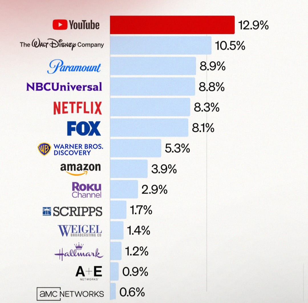 Nielsen-in məlumatına görə, 2025-ci ilin noyabrında YouTube TV ekranlarında ümumi izləmə vaxtının 13%-ni toplayıb.